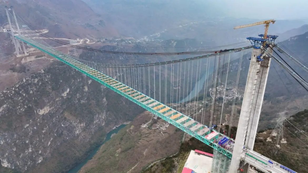 Após três anos de construção, a ponte sobre o Grande Desfiladeiro de Huajiang abrirá ao tráfego este domingo, reduzindo de duas horas para apenas alguns minutos o tempo necessário para atravessar o vale, conhecido como a “Fenda do Mundo” devido à sua profundidade.