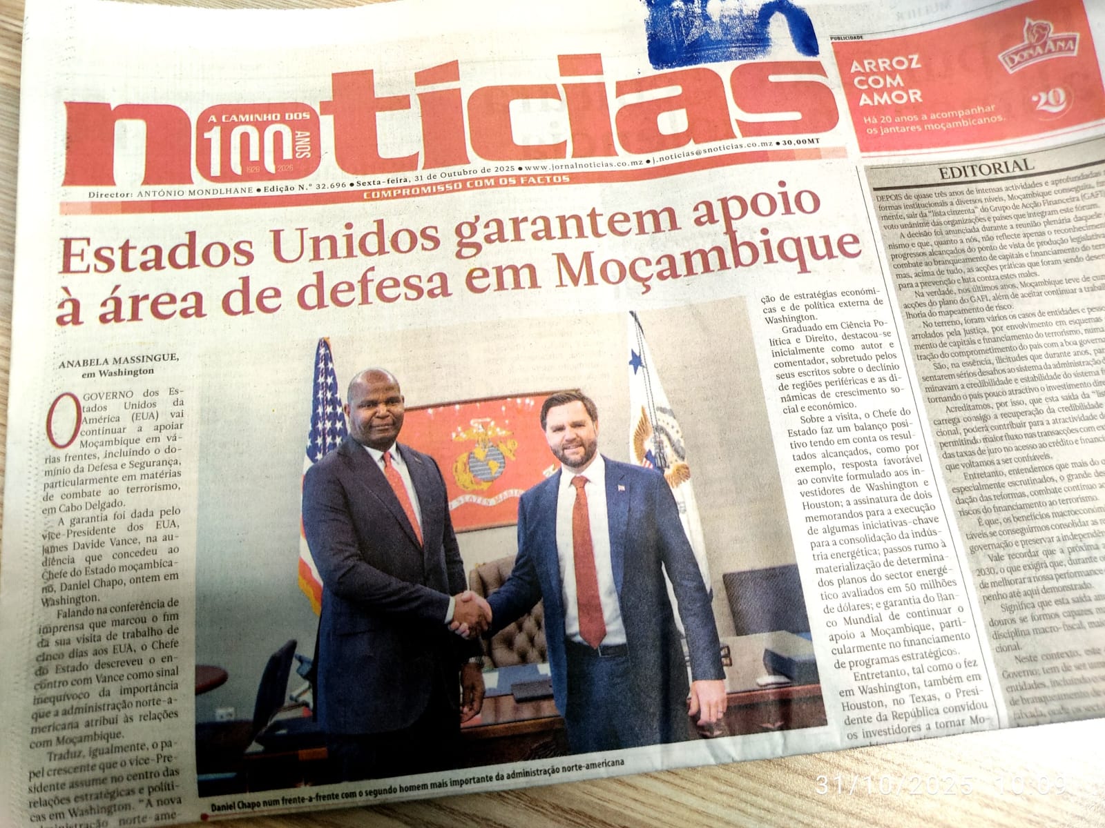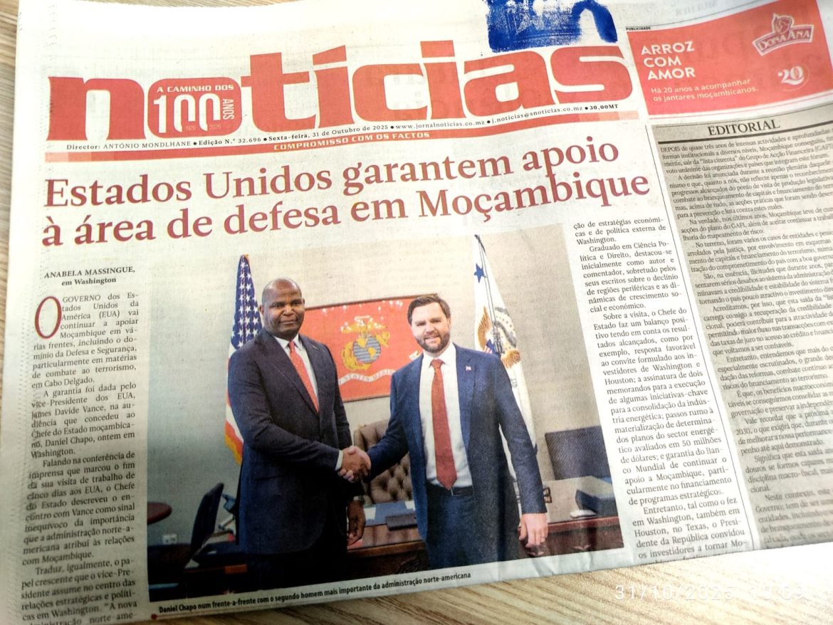 O Sub-Chefe da Redacção do Jornal Notícias, Titos Munguambe, apresenta os principais temas que marcam a edição de hoje, 31 de Outubro de 2025. Fique por dentro das notícias que fazem manchete em Moçambique e descubra os acontecimentos que estão a moldar o país. Leia mais e fique informado!