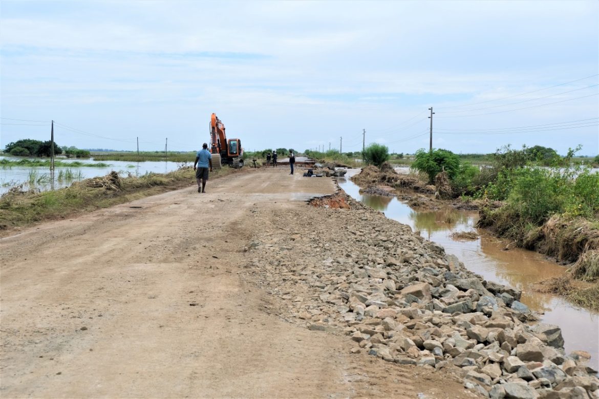 De acordo com uma nota da ANE, o empreiteiro que trabalha no enchimento dos aquedutos arrastados pelas águas das cheias e avança esta tarde no enchimento da meia faixa de rodagem, corroída pelas águas, entre o quarto e o quinto corte daquele troço.