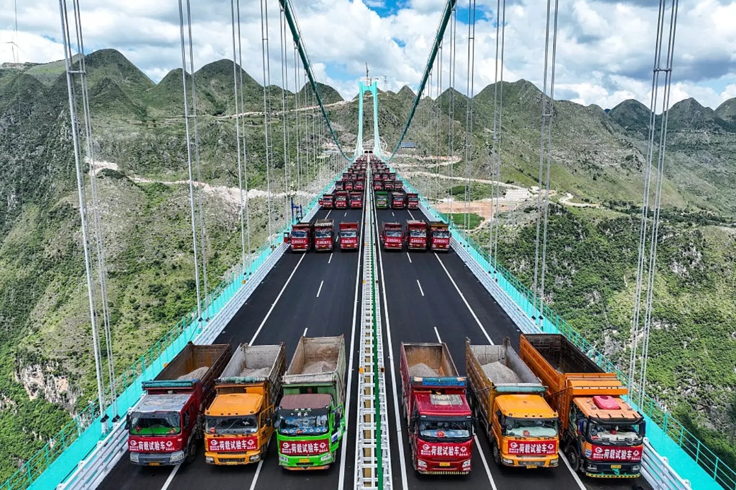 A Ponte Huajiang Grand Canyon, oficialmente a mais alta do mundo, passou por testes finais para garantir que está pronta para suportar o tráfego público, antes da sua inauguração.