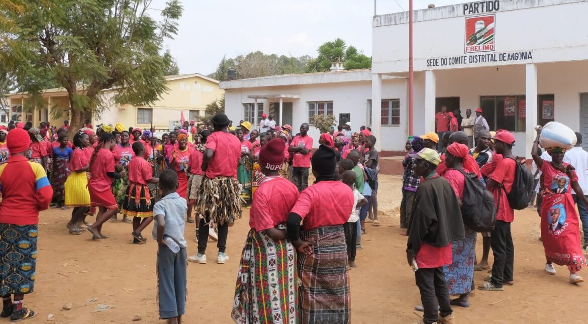 O candidato presidencial da Frelimo, Daniel Chapo acaba de desembarcar na vila de Ulongue, sede distrital de Angónia, Tete, para apresentar à população local as suas propostas de governação e pedir votos para si e o partido Frelimo.
