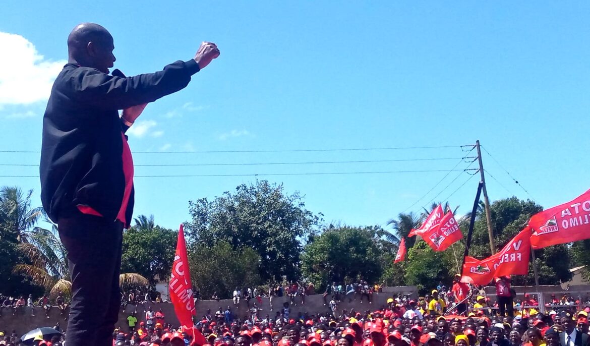 Chapo está a intervir no comício que decorre na vila-sede de Morrumbala, onde apela ao voto para si e o seu partido, a Frelimo.
