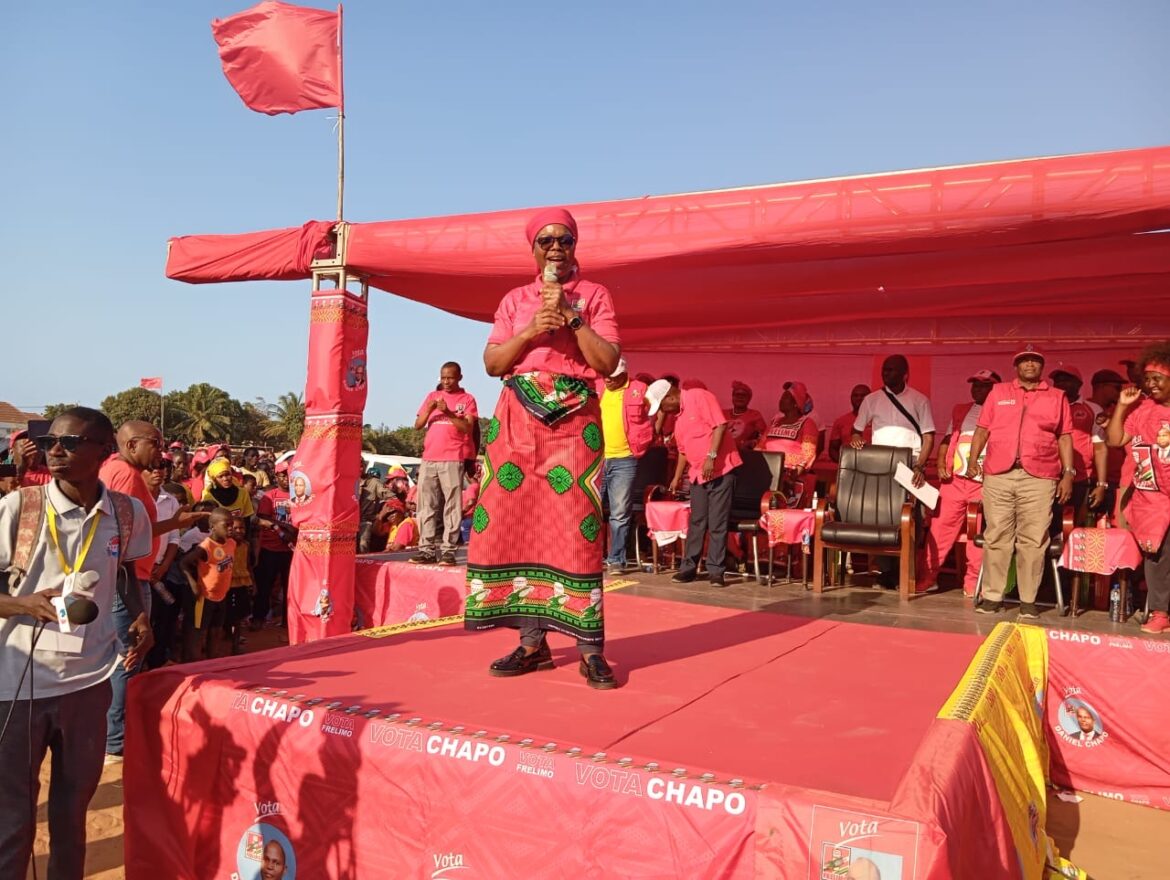 A CHEFE da brigada central de assistência à província de Cabo Delgado, Amélia Muendane agradece à população de Cabo Delgado pelo empenho na divulgação da imagem de Daniel Chapo e do manifesto da Frelimo durante os dias de campanha.