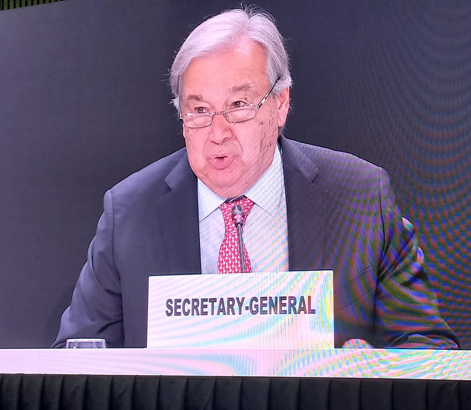 De seguida, Guteres convidou o presidente do Governo da Espanha Pedro, Sánchez, para presidir a reunião.