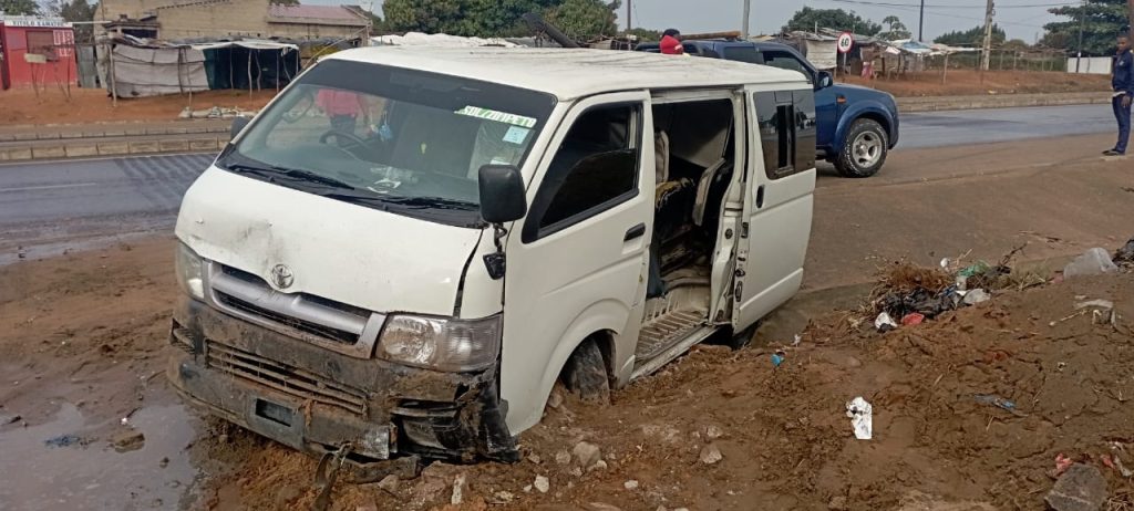 Uma viatura de transporte semi-colectivo de passageiros embateu, esta manhã, contra uma ligeira de marca Toyota Raum, junto à rotunda que dá acesso ao bairro Magoanine C, na Estrada Circular de Maputo, provocando danos nas duas viaturas, mas sem feridos.