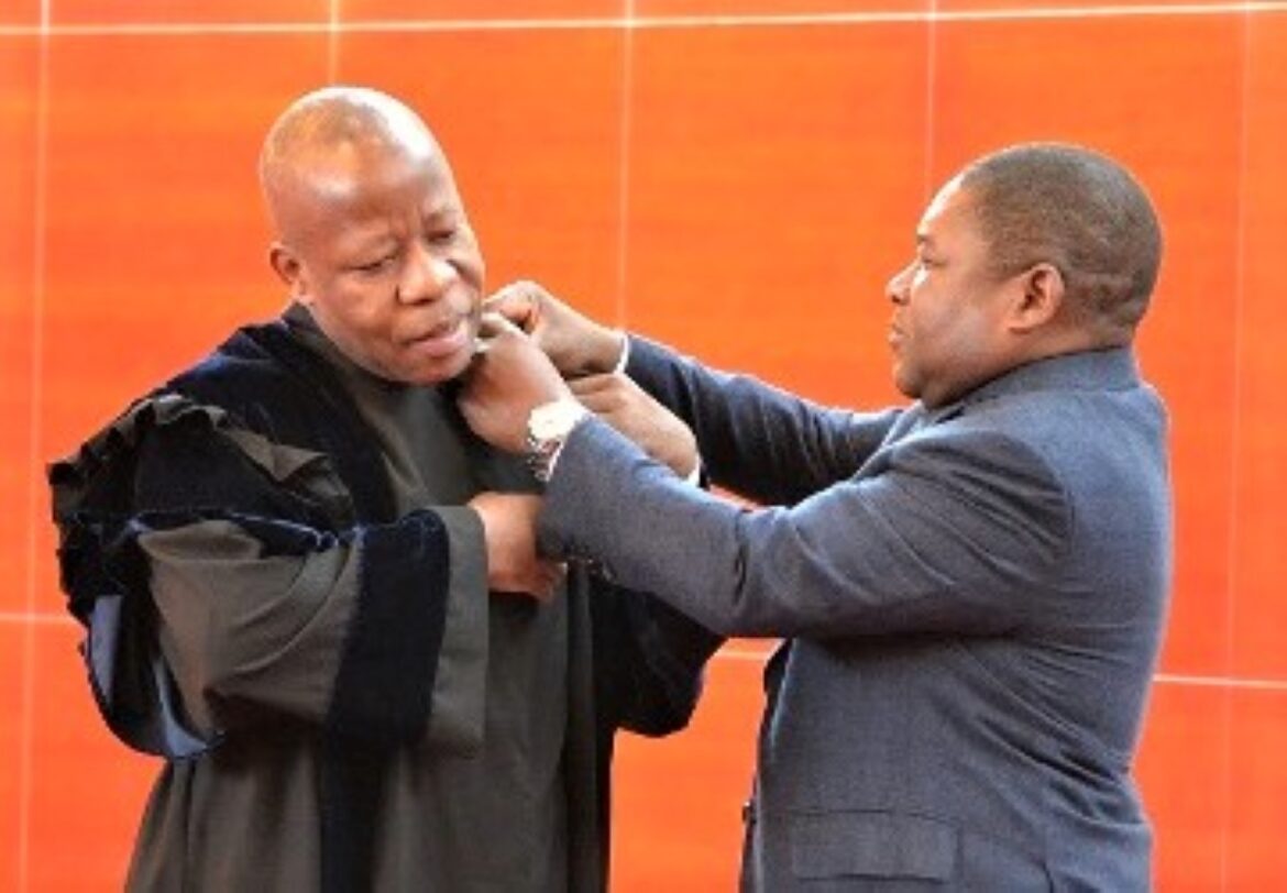 O Presidente da República, Filipe Nyusi, dirige hoje, no Gabinete da Presidência da República, a cerimónia de tomada de posse de Adelino Muchanga, reconduzido para o cargo de Presidente do Tribunal Supremo, a mais alta instância dos tribunais judiciais em Moçambique.