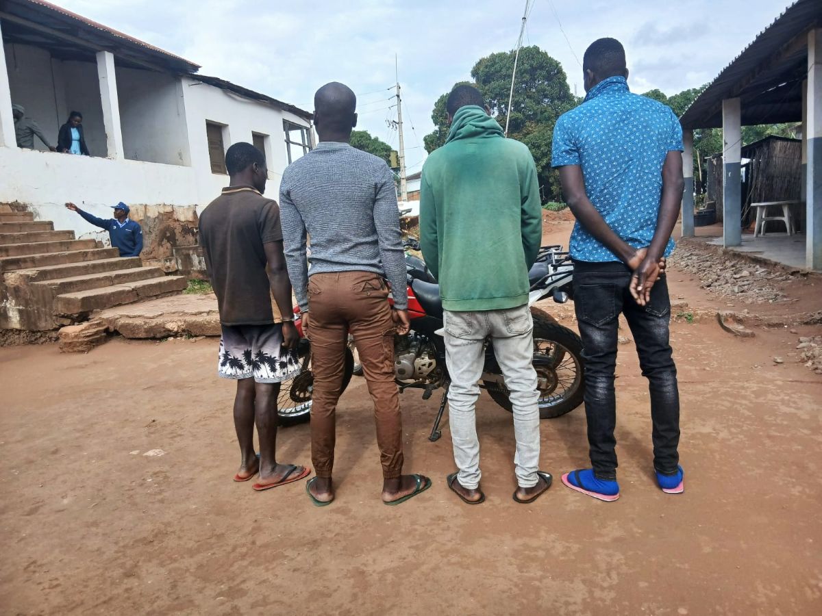 Quatro indivíduos com idades que variam entre 20 e 40 anos de idade estão detidos no Comando da Polícia da República de Moçambique (PRM), em Chibuto, na província de Gaza, indiciados de roubo e venda de seis motorizadas de marca Honda, modelo XL.