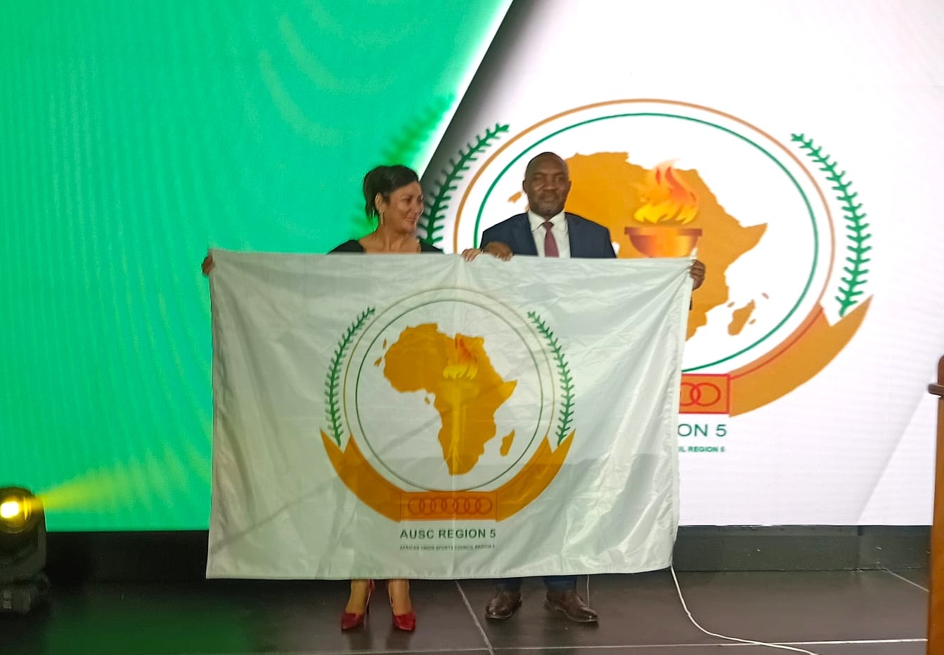 Na ocasião, a ministra da Educação, Juventude, Desporto e Inovação da Namíbia procedeu à entrega formal dos símbolos da AUSC — a Bandeira e a Constituição — ao Secretário Permanente do Ministério da Juventude e Desporto de Moçambique, Júlio Mendes.
