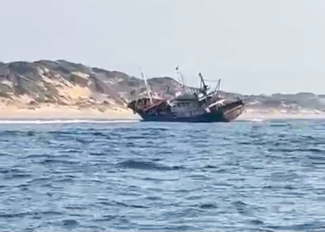 Um barco com quatro tripulantes de origem chinesa e outros 12 de nacionalidade desconhecida, está encalhado na praia entre as localidades de Massavana e Ligogo, no distrito de Jangamo, província de Inhambane, depois de embater numa rocha.