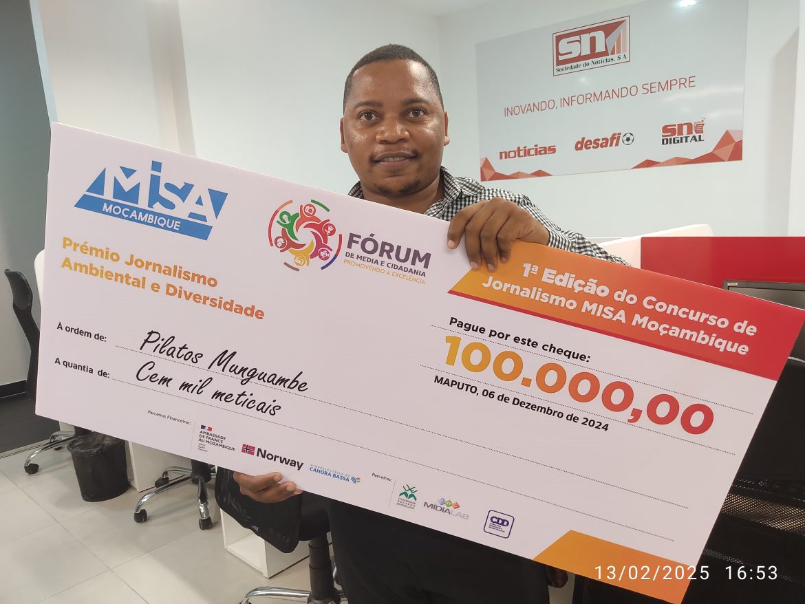 O jornalista do matutino Notícias Pilatos Munguambe venceu hoje o primeiro lugar da primeira edição do concurso de Jornalismo Ambiental e Diversidade.