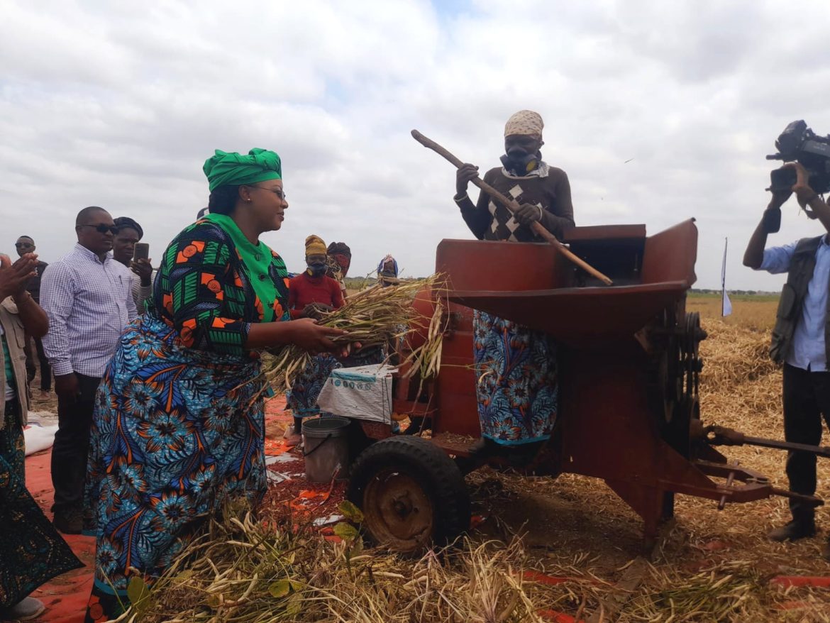 Segundo o programa de actividades, hoje, a esposa do Presidente da República (PR) deslocou-se ao posto administrativo de Macaretane, onde visitou um campo de produção da empresa “Moz Farma LDA”, para a colheita simbólica da cultura de feijão vulgar, no campo de produção da associação Maguco 2 e barragem além de entregar dois tractores agrícolas.