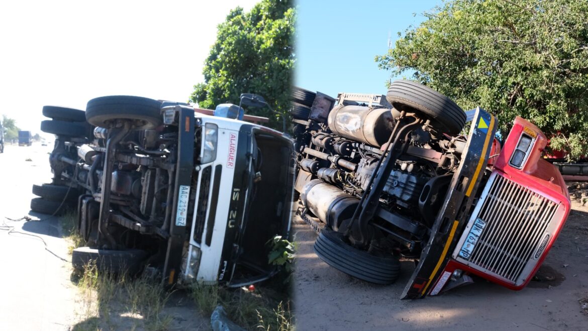 DOIS camiões de transporte de carga capotaram, na manhã de ontem, na Estrada Nacional Número um (EN1) no troço entre a vila de Marracuene e a localidade de Bobole, na província de Maputo.