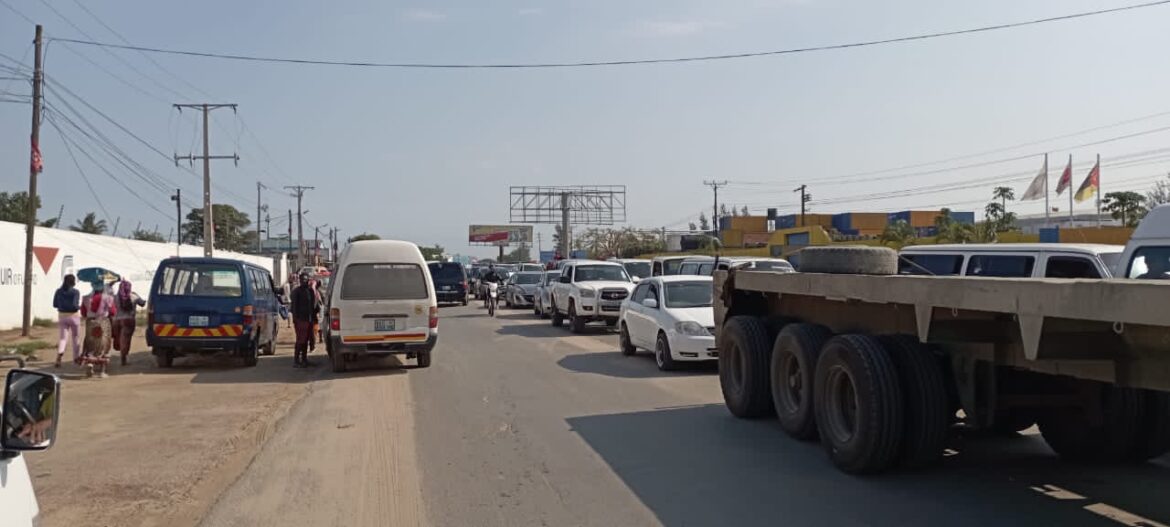 Desde segunda-feira, o trânsito tornou-se um caos porque os carros têm de transpor com cuidado buracos e águas pluviais estagnadas nas zonas da paragem Mafurreira, bombas de combustível e coqueiros, onde para além da degradação da via, a estrada encontra-se alagada.