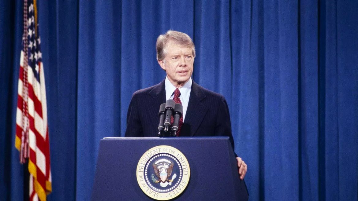 Chegou a Presidente dos EUA em 1977 e permaneceu no cargo até 1981. Para “alcançar” o cargo venceu o então Presidente Gerald Ford por uma margem de votos tangencial – e numa América ainda marcada pelo escândalo “Watergate” que forçou o Presidente Richard Nixon a demitir-se.