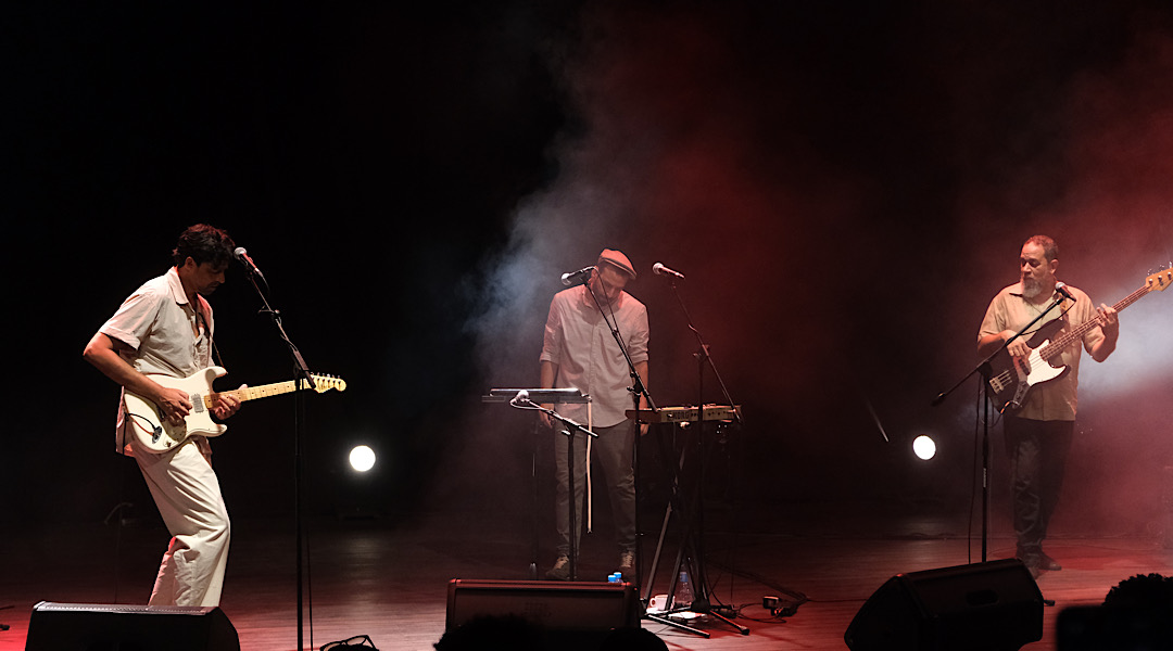 Com a percussão e as notas baixas soando, criou-se cenário para entrar Tiago Correia-Paulo com a guitarra e logo depois Pedro da Silva Pinto completou o grupo para em consonância sobrepor a sua voz a outros instrumentos musicais.